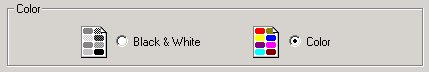 グループボックスにグラフィックや付加的なテキストを含めることは、しばしば求められる。たとえば以下では印刷の白黒とカラーの概念を描写しているグラフィックを用いている。